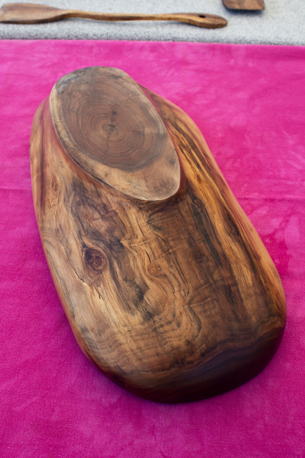 The difference between a carved bowl and a turned bowl is enormous. Most obvious is the turned bowl is round unless it's warped. The carved bowl is elliptical. Carving allows most use of the flow of the grain to be the dominant feature. It also utilizes natural imperfections. Its definitely harder work, but more gratifying. I think it's more beautiful.
