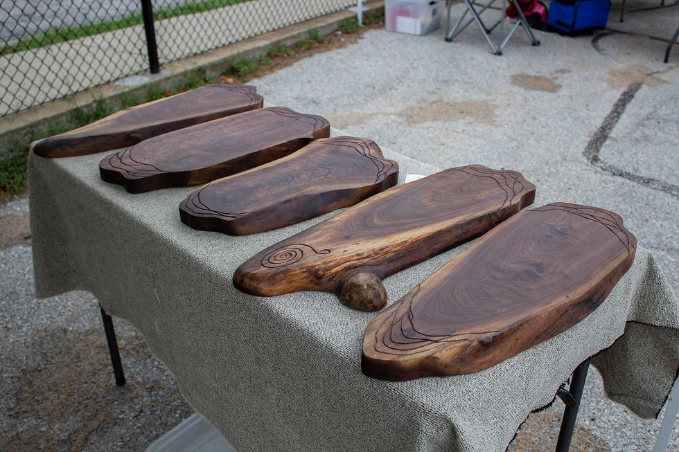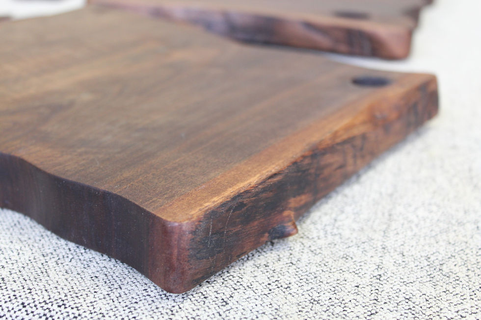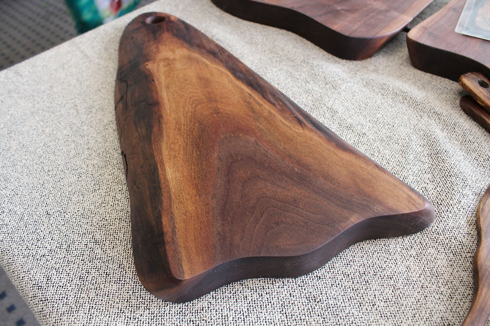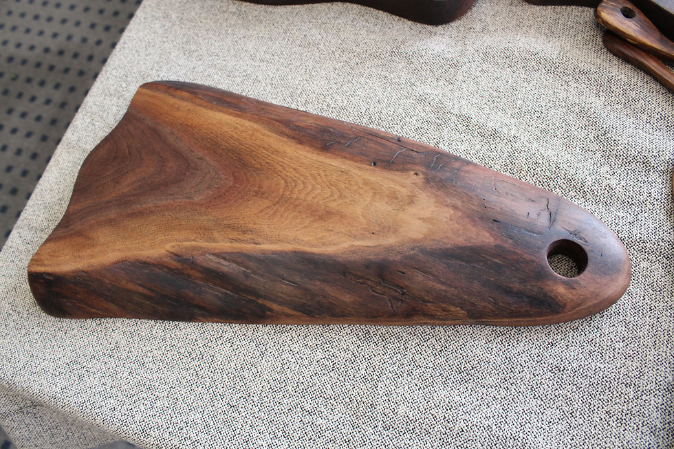 I carve a variety of types of trays including cutting boards, charcuterie boards, cheese trays and serving platters. Depending on the piece, I include detailed carvings to enhance the beauty of the piece. The smaller pieces are specifically meant to be used for cutting boards. Continual use only makes them more attractive. Knife marks can largely be erased by rubbing on a little bit of vegetable oil.